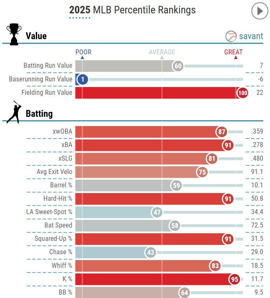 To get the kind of above average offence out of him as they did last season, while also getting elite, best-of-the-best, 100th percentile defence? That is damn close to irreplaceable, especially considering just how few genuine, every day big league catchers actually exist.