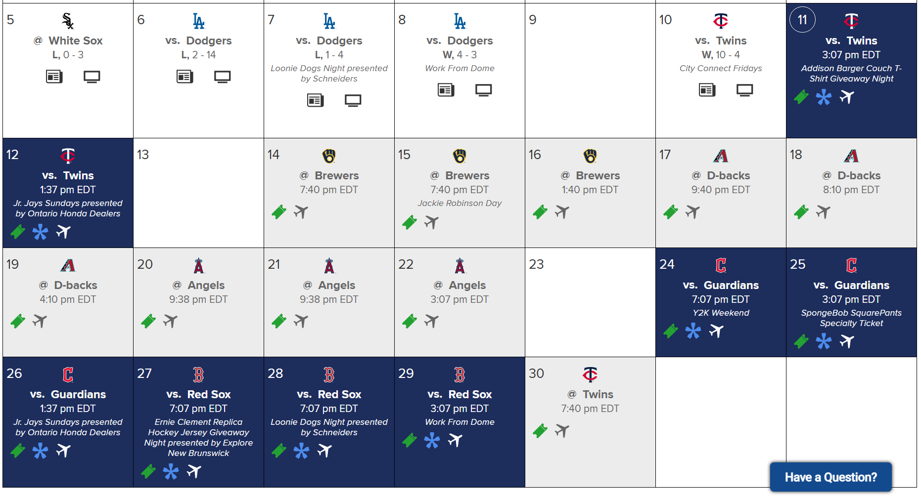 • Speaking of Varland, on this week’s Patreon-exclusive bonus episode of Blue Jays Happy Hour, Nick and I spent a bit of time talking about the unusually large gulf between how good Varland looks when he’s good, and how bad he looks when he’s bad. Plus, because we were sick of the doom and gloom surrounding the team prior to these last two games, we went through the Jays’ entire roster and rated each player based on likeability. Below is a quick preview to whet yer whistle. T\o listen in full find us at Patreon.com/BJHH.